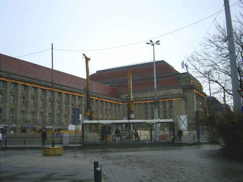 Man hat den Bahnhof zweimal nebeneinander gebaut und bekam zwei siamesische Zwillinge. Der westliche Flügel gehörte der Sächsischen Staatseisenbahn ...