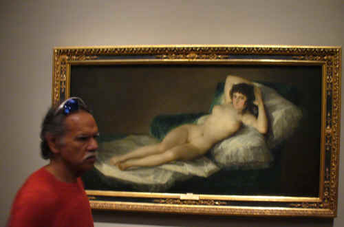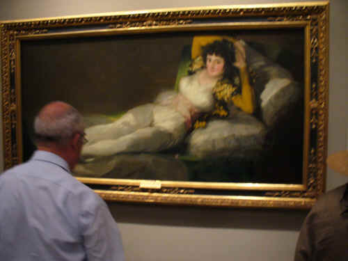 Die versteckten Reize sind nicht mehr da; die nackte Maya ist nicht mehr grazil, sie macht nur noch den Eindruck einer Amüsiermatraze. Der Museumsbesucher im Bild scheint meine Meinung zu teilen.