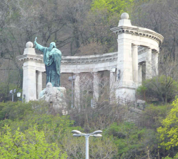 Die undankbaren Budapester packten den Gellert in eine Tonne und warfen ihn von diesem hohen Felsen in Buda auf die Donau Strandpromenade. Noch ein Beweis für die Volksweisheit, dass keine gute Tat unbestraft bleibt.