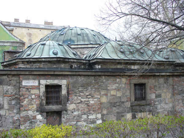 Die 150jährige Türkenherrschaft hat in vielen Bereichen ihre Spuren hinterlassen. Der Paprika wurde bereits erwähnt. Sehr viele Ungarn sind auffallend dunkelhäutig und -haarig. Eine weitere Hinterlassenschaft der Eroberers sind die türkischen Bäder. Wir sehen hier Király Fürdö (=das Königsbad). Der türkische Stadtverwalter Pascha Arslan ließ 1566 dieses Bad bauen, das heute noch in Gebrauch ist. Nach dem Besuch des Dampfbades wird man nach türkischer Art (d.h. mit den Füssen) vom Masseur geknetet.