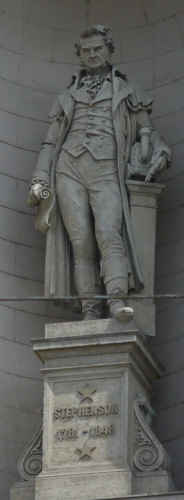 An seiner Fassade hat der Ostbahnhof die Statuen der Pioniere Stephenson und Watt. Was für eine geniale Idee!