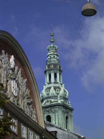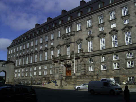 Das ist die Christianborg. Sie diente früher als Sitz der Könige, bis ein Brand ihnen die Lust an diesem Schloß verdarb. Hier ist heute der Sitz der Folketing also des dänischen Parlaments. Hier arbeiten die 179 Abgeordneten (2 davon kommen aus Grönland und zwei aus den Färöer Inseln). Ebenfalls hier hat das höchste dänische Gericht seinen Sitz. Ausserdem hat hier die Königin ihre Repräsentationsräume. Ob der königliche Hundefänger ebenfalls hier seine Amtstube hat, war nicht zu erfahren.