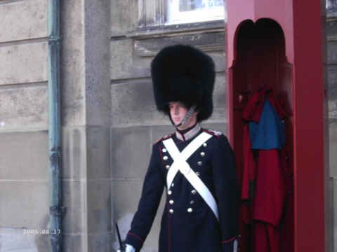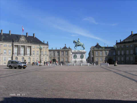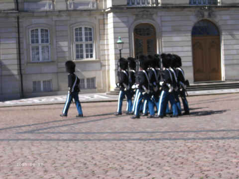 Die Königin der Dänen wohnt mit ihrer Familie im Schloß Amalienborg. Es ist ein schöner heiterer Bau. Das, was ich noch viel schöner finde, ist dass sie keinen deutschen Sicherheitschef hat, der einen riesigen Zaun um das Schloß gebaut und Armeen von Bewachern geholt hätte. Man kann problemlos auf den Hof marschieren ohne Ausweise zu zeigen und sich alles ansehen. Wie schön, dass die Paranoia der großen Nachbarnation nicht ansteckend ist.