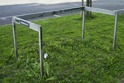 Abgegrenzte Bereiche auf einer Grünfläche, die als Hundeklo dienen.