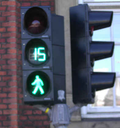 Fußgänger Ampeln mit Sekundenzähler. Du hast 15 Sekunden, bis du überfahren wirst.