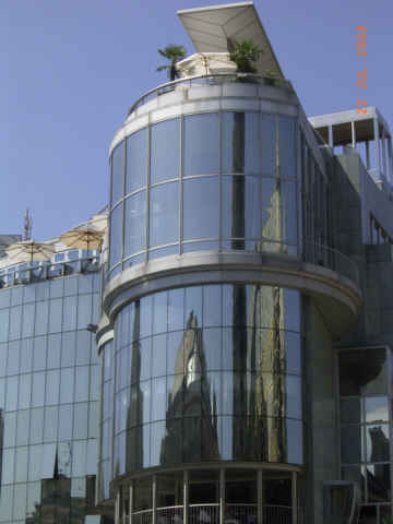 Interessant wird der Dom, wenn er verzerrt auf der Fassade des Haas - Hauses reflektiert wird..